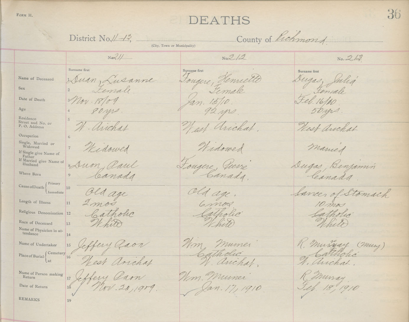 Death Registration: Year: 1909 book: 16 page: 36 number: 211