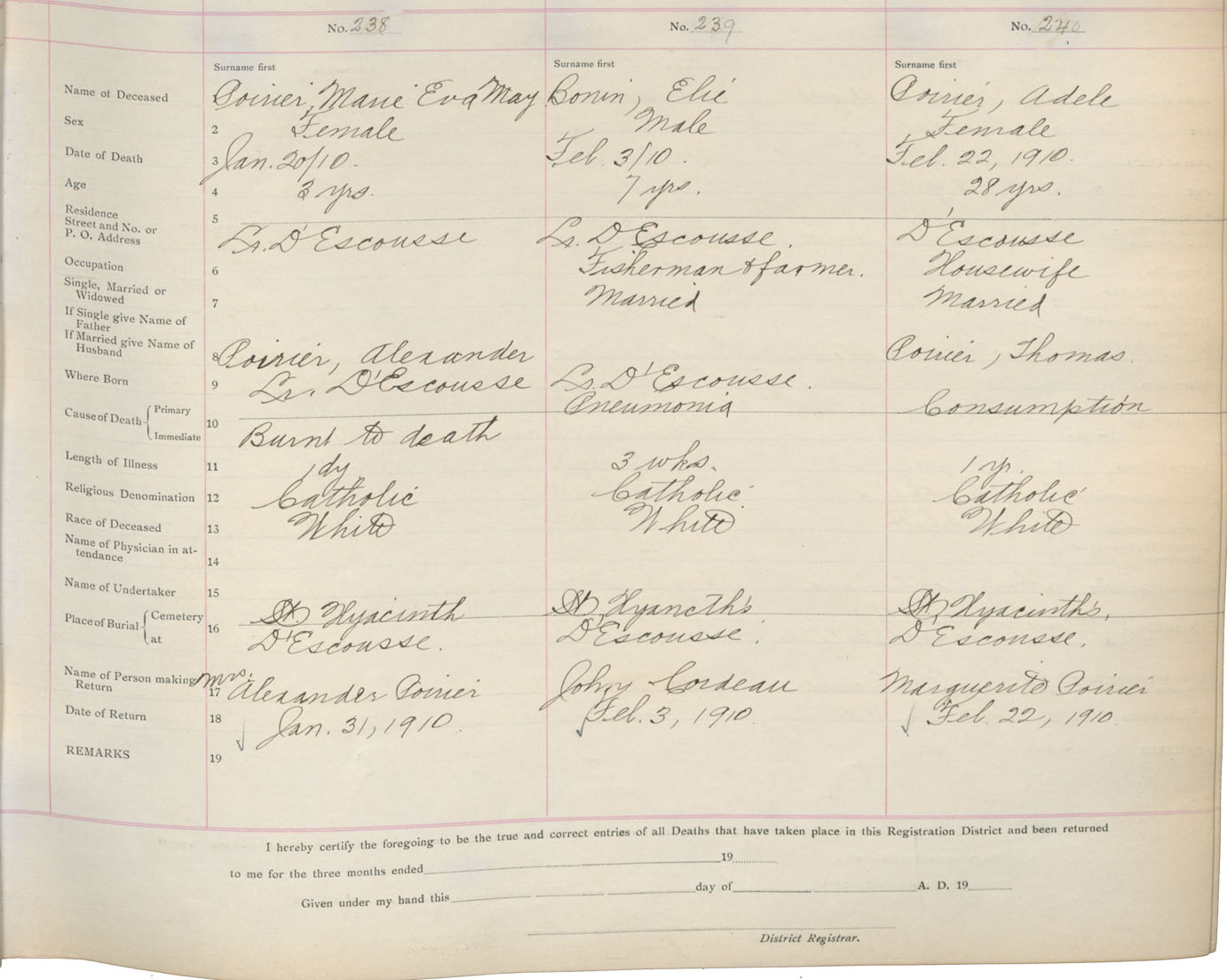 Death Registration: Year: 1910 book: 16 page: 40 number: 238