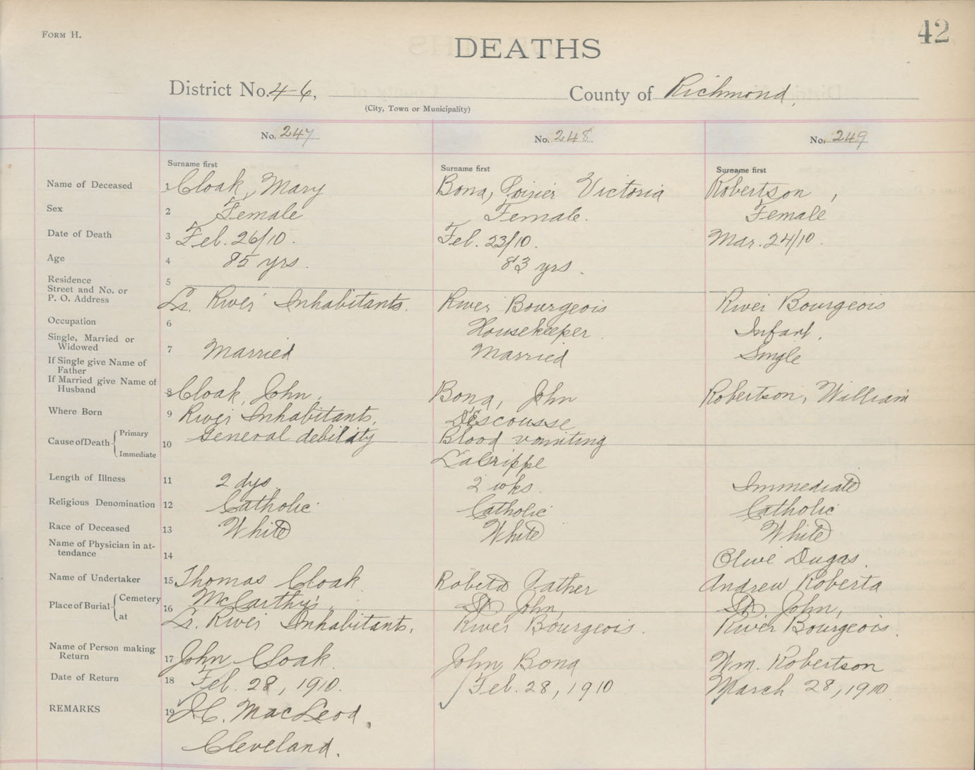 Death Registration: Year: 1910 book: 16 page: 42 number: 249