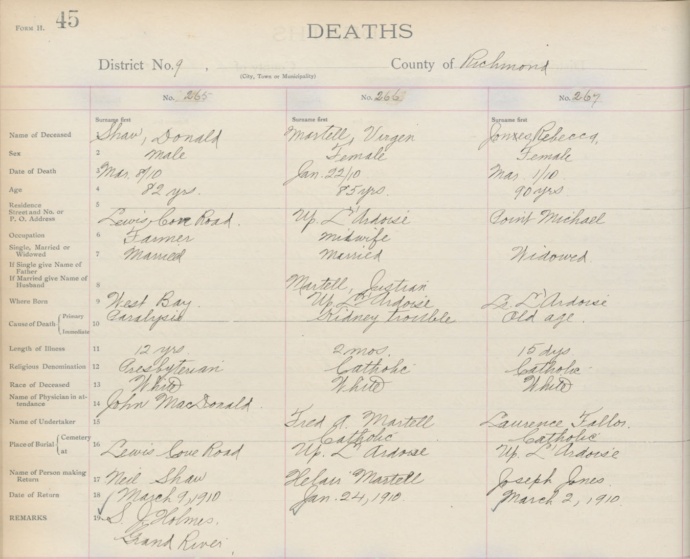 Death Registration: Year: 1910 book: 16 page: 45 number: 267
