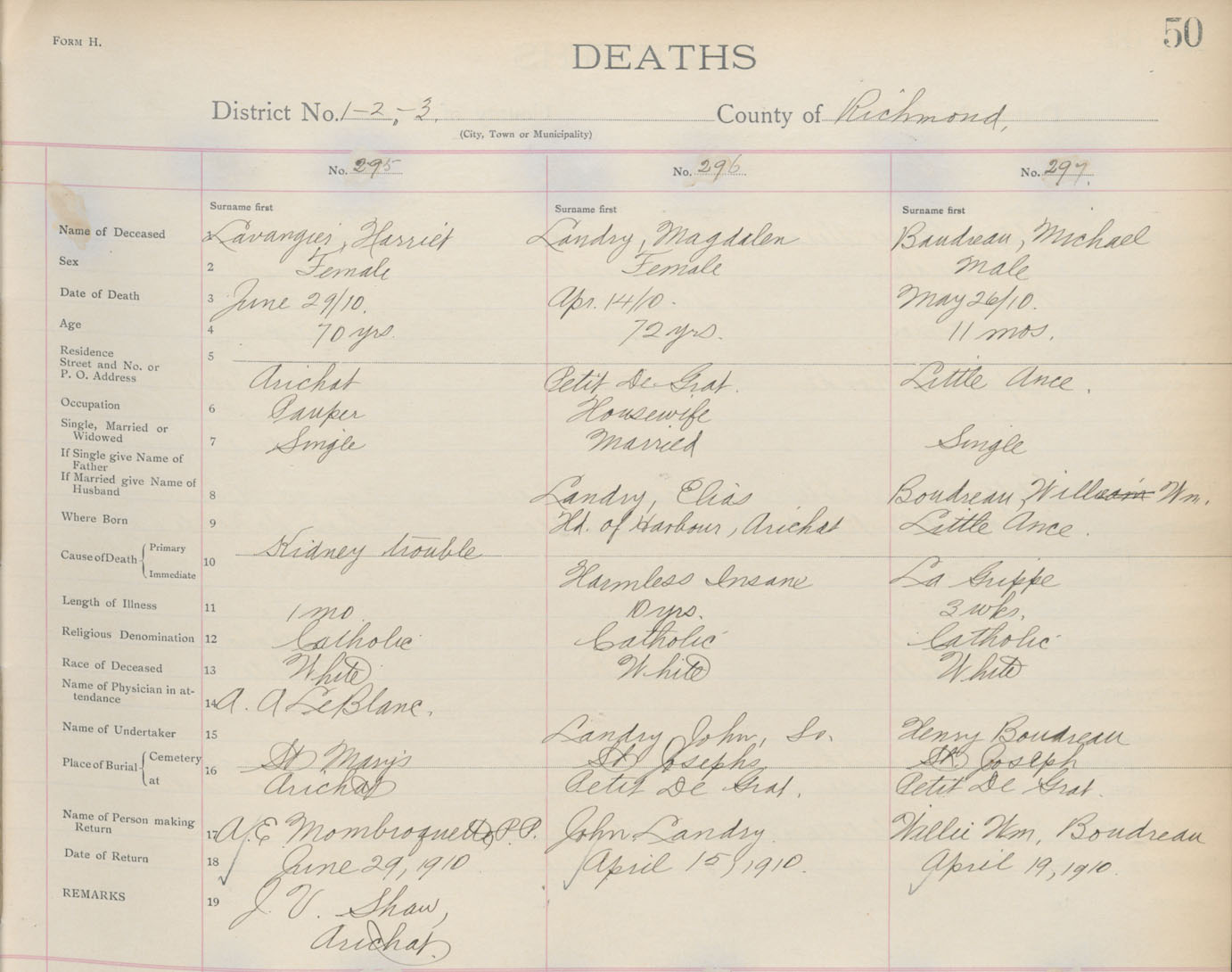 Death Registration: Year: 1910 book: 16 page: 50 number: 297