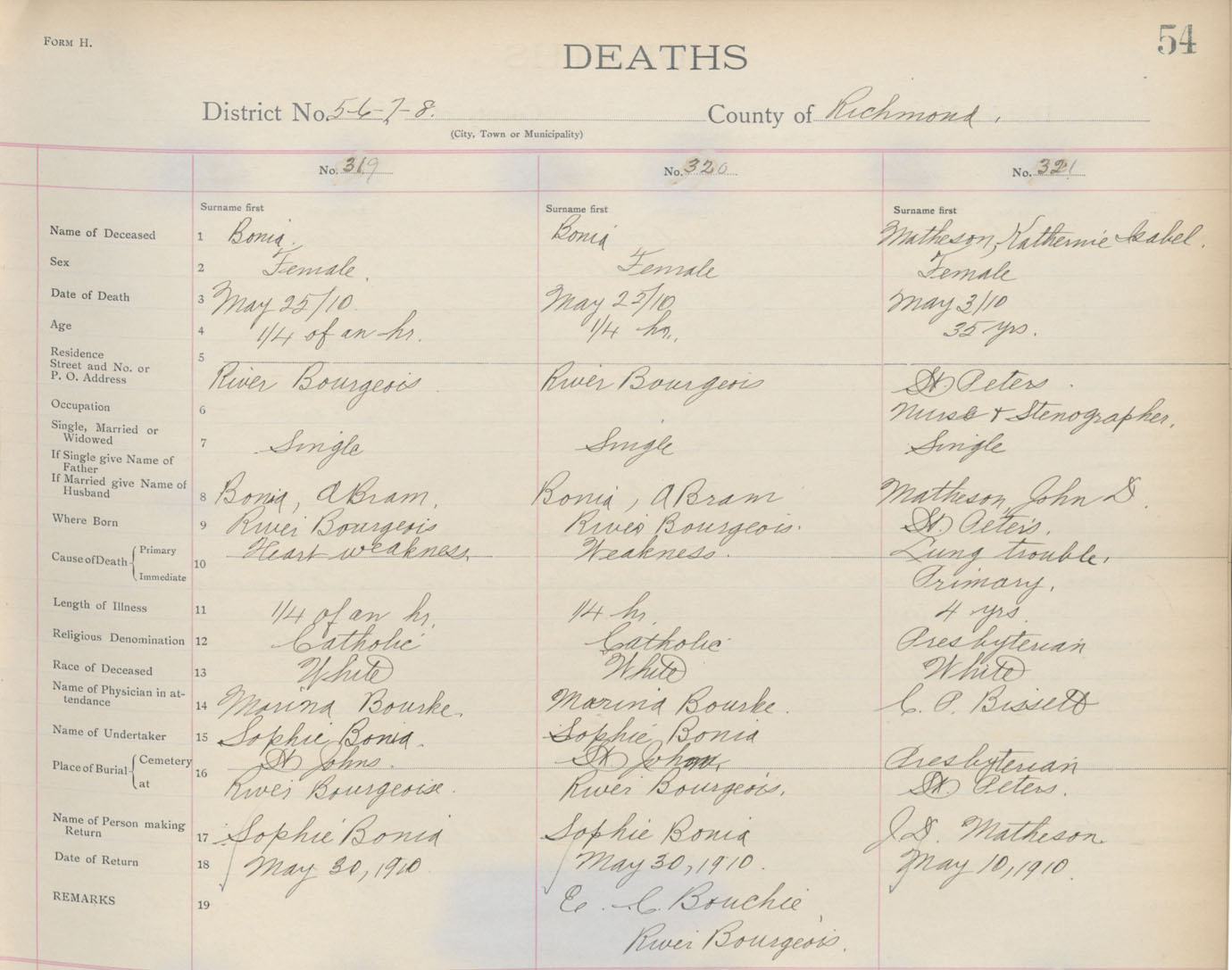 Death Registration: Year: 1910 book: 16 page: 54 number: 321
