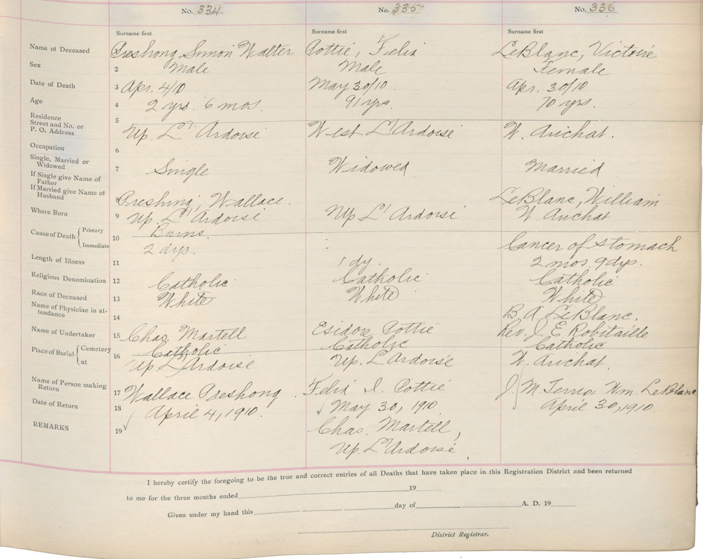 Death Registration: Year: 1910 book: 16 page: 56 number: 336