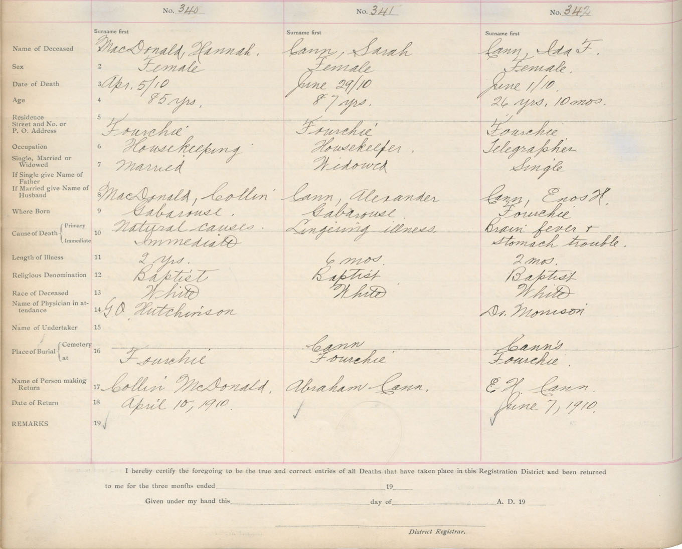 Death Registration: Year: 1910 book: 16 page: 57 number: 340