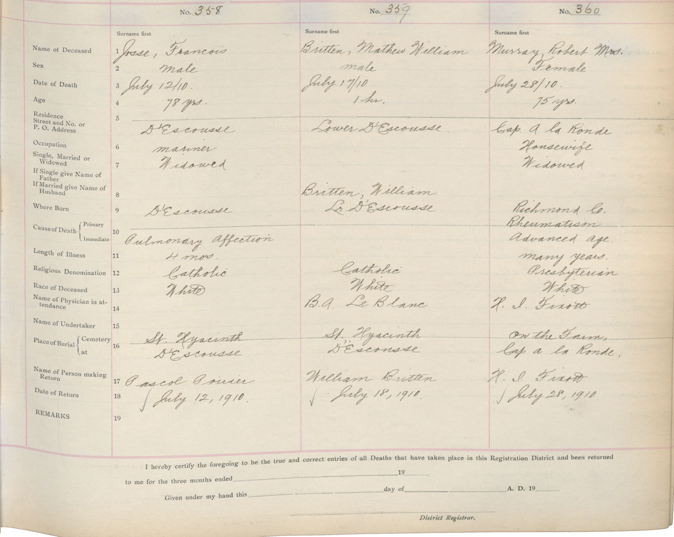 Death Registration: Year: 1910 book: 16 page: 60 number: 358