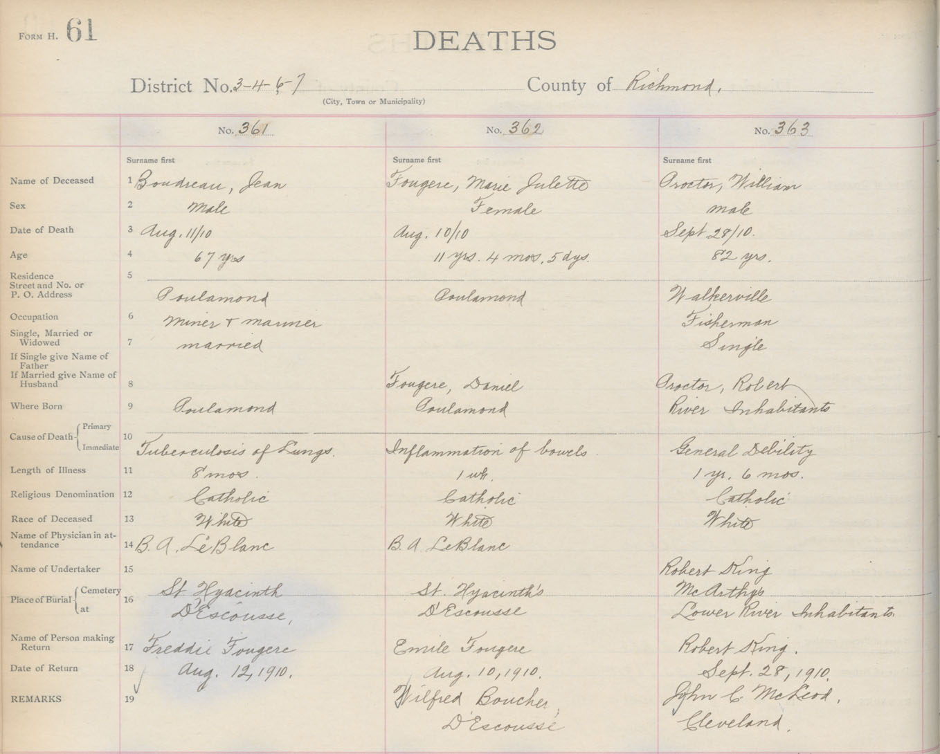 Death Registration: Year: 1910 book: 16 page: 61 number: 361