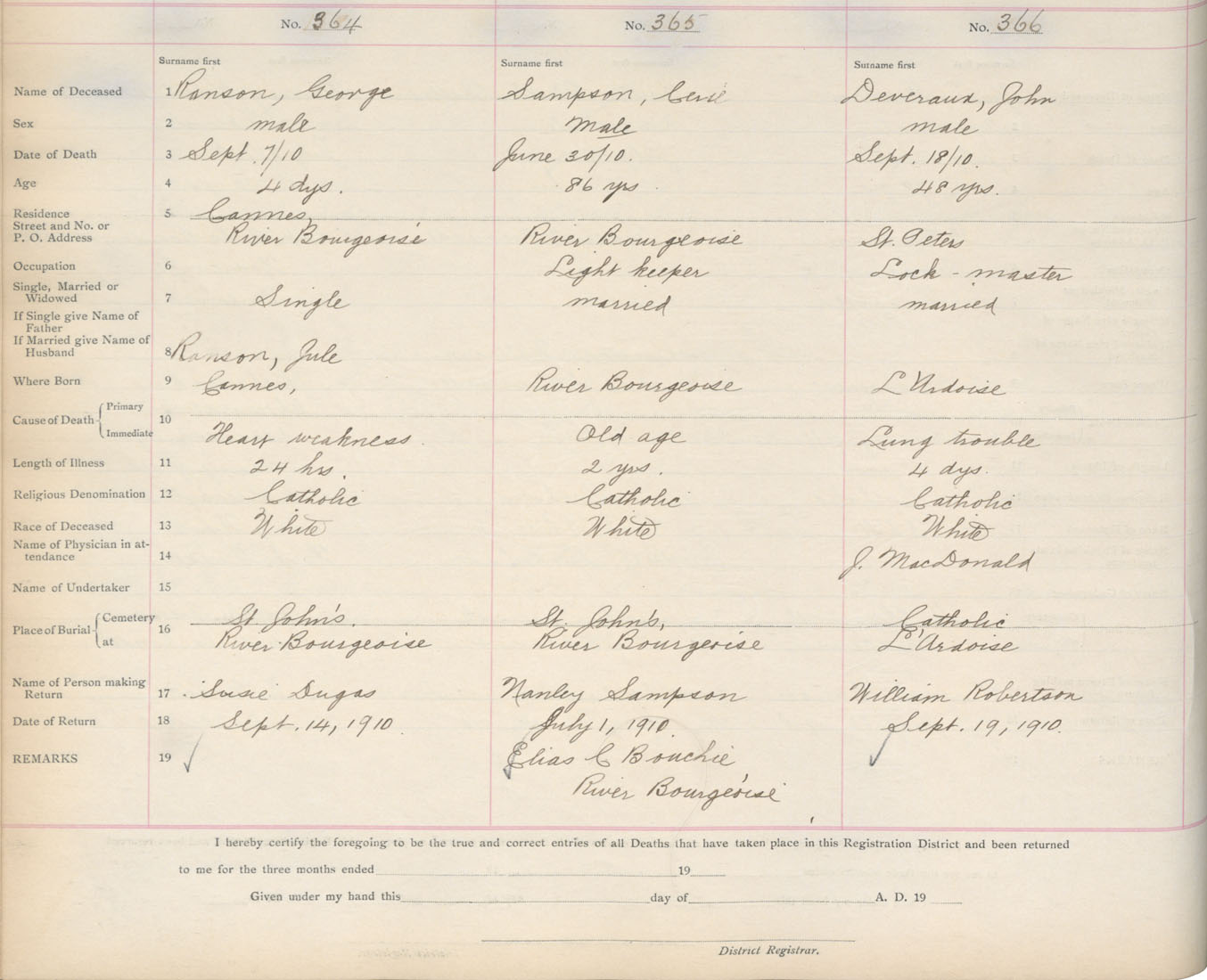 Death Registration: Year: 1910 book: 16 page: 61 number: 364