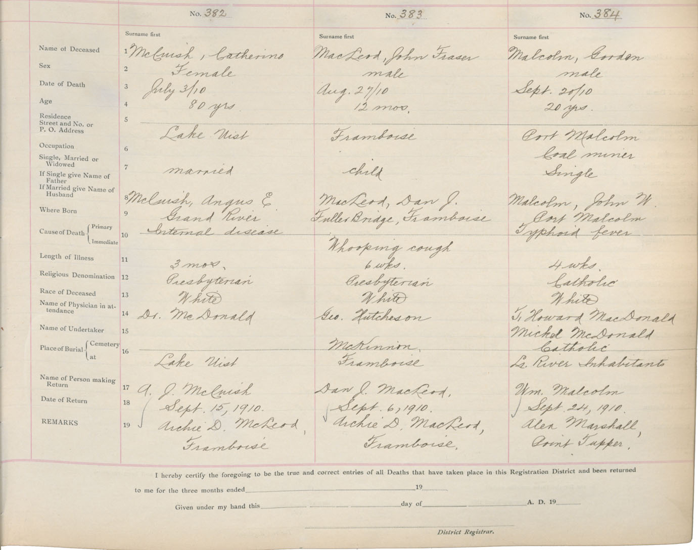 Death Registration: Year: 1910 book: 16 page: 64 number: 382
