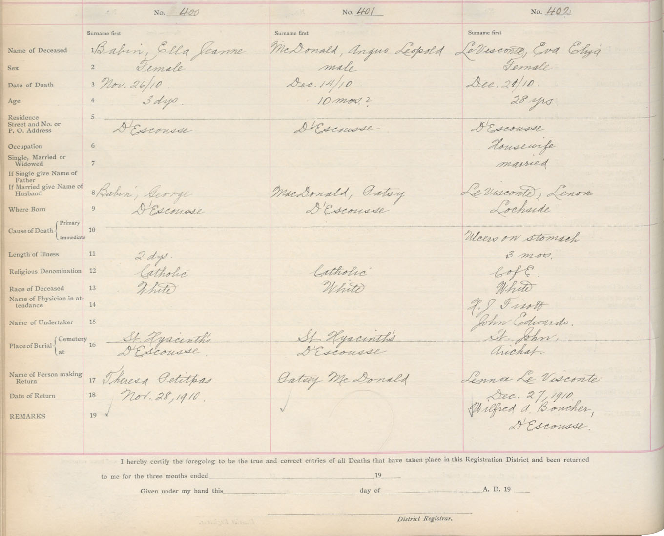 Death Registration: Year: 1910 book: 16 page: 67 number: 400