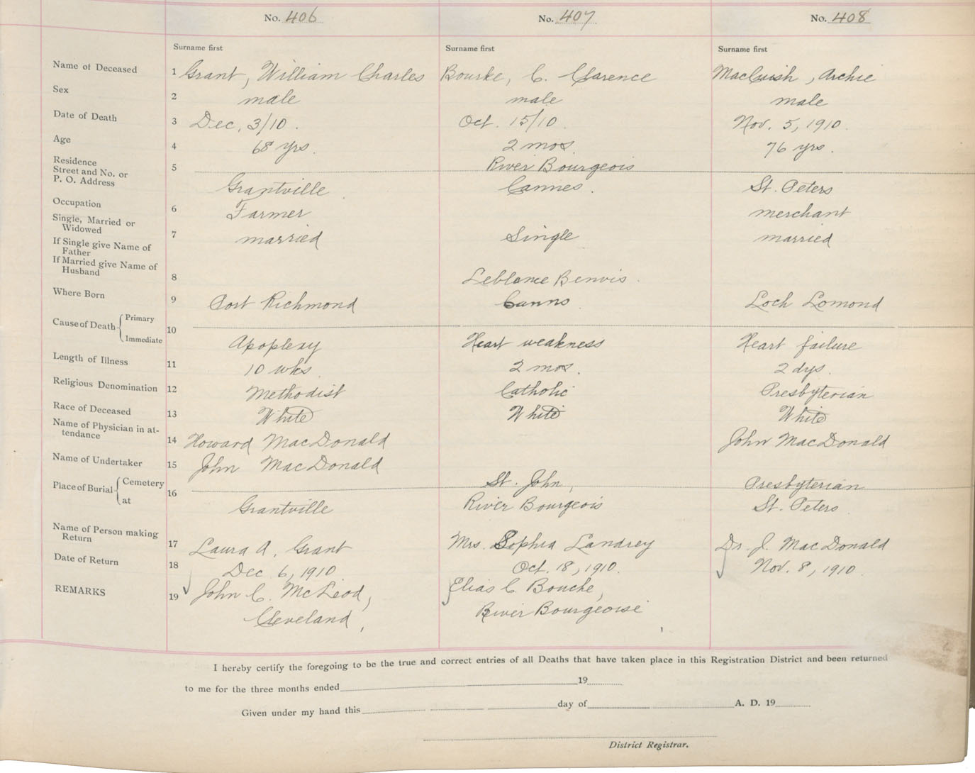 Death Registration: Year: 1910 book: 16 page: 68 number: 406