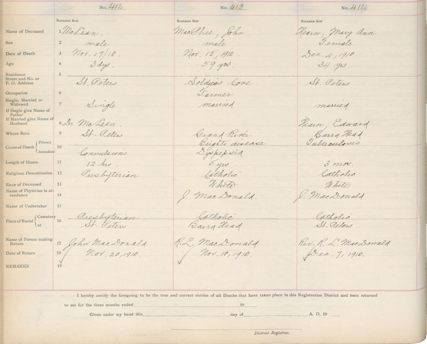 Death Registration: Year: 1910 book: 16 page: 69 number: 412