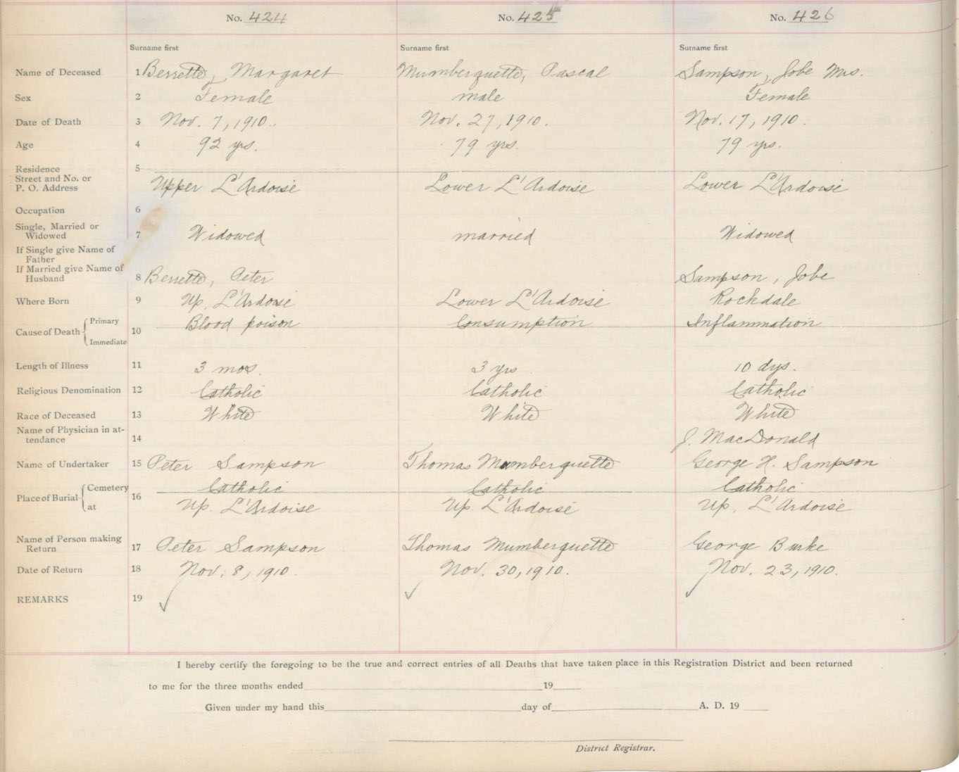 Death Registration: Year: 1910 book: 16 page: 71 number: 426