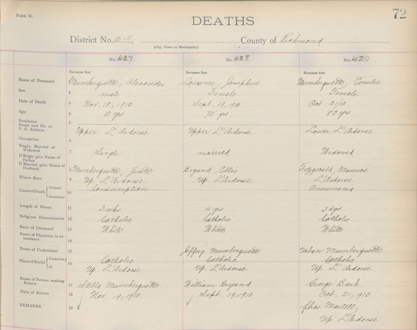 Death Registration: Year: 1910 book: 16 page: 72 number: 429