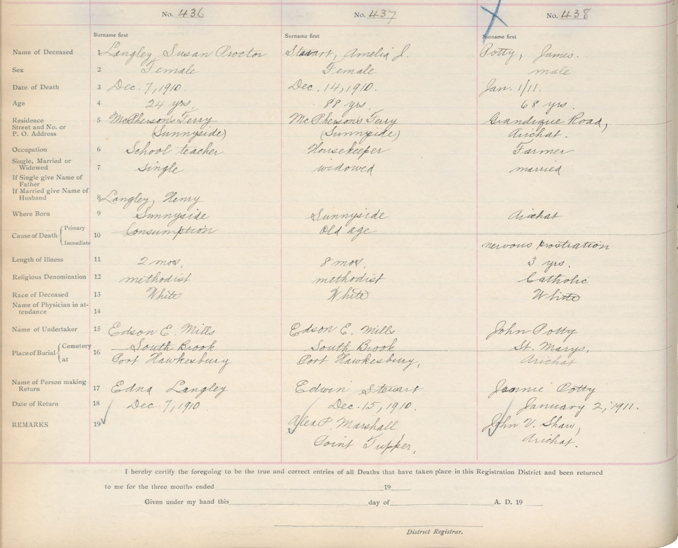 Death Registration: Year: 1911 book: 16 page: 73 number: 438