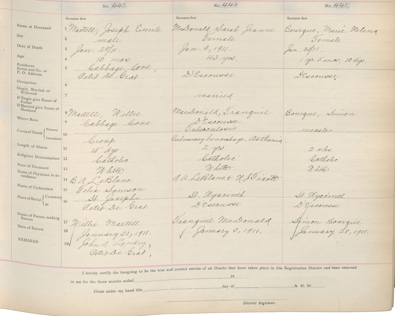 Death Registration: Year: 1911 book: 16 page: 74 number: 444