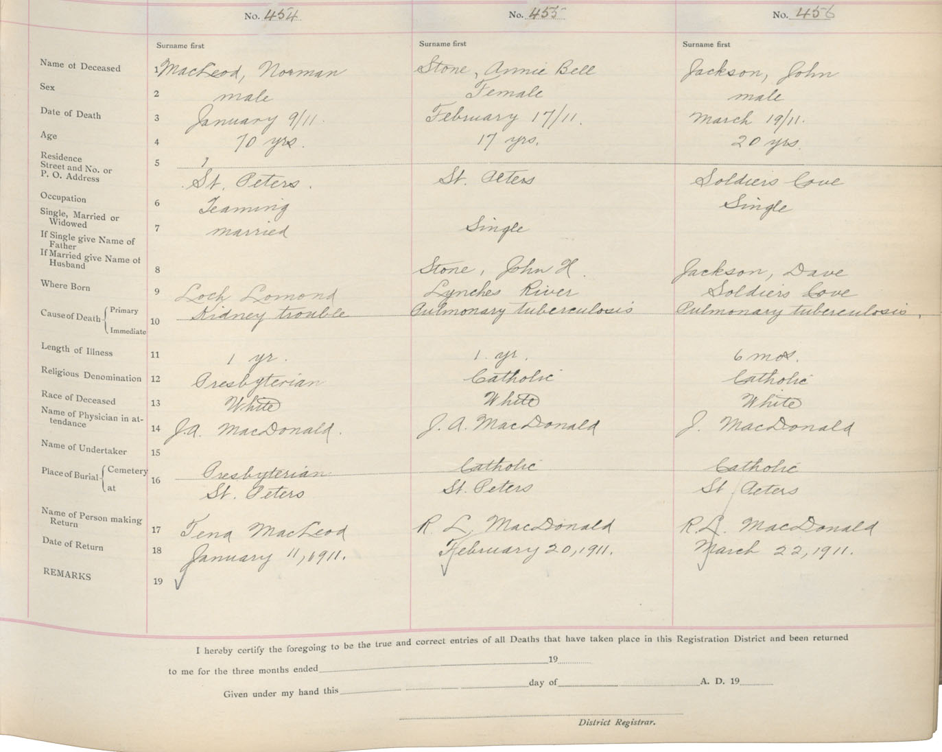 Death Registration: Year: 1911 book: 16 page: 76 number: 456