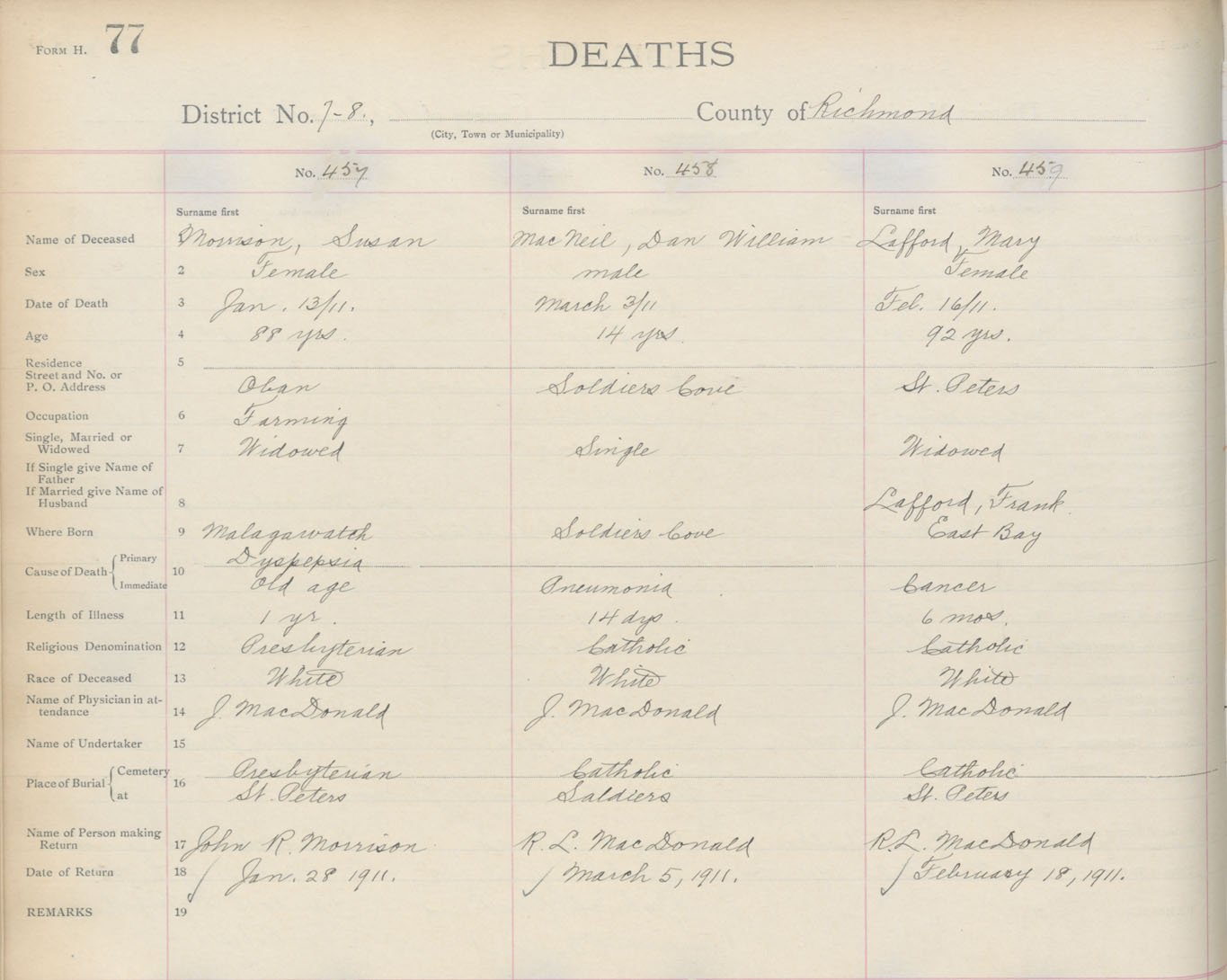Death Registration: Year: 1911 book: 16 page: 77 number: 459