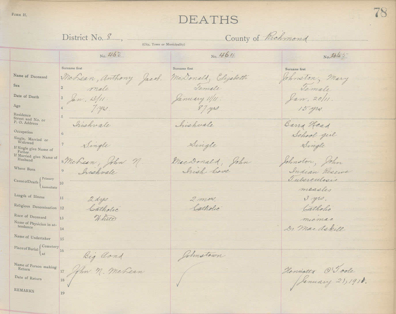 Death Registration: Year: 1911 book: 16 page: 78 number: 465