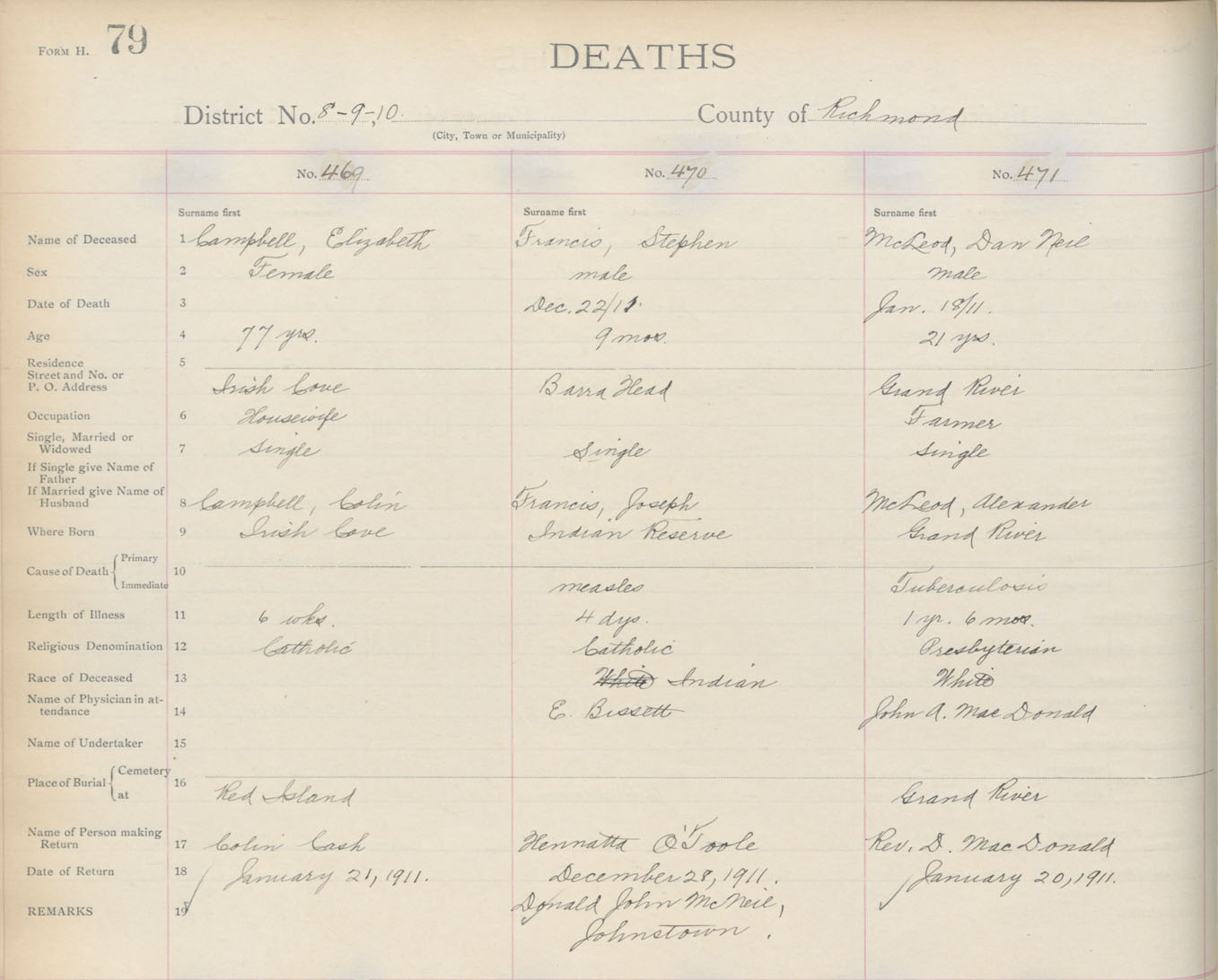 Death Registration: Year: 1911 book: 16 page: 79 number: 471