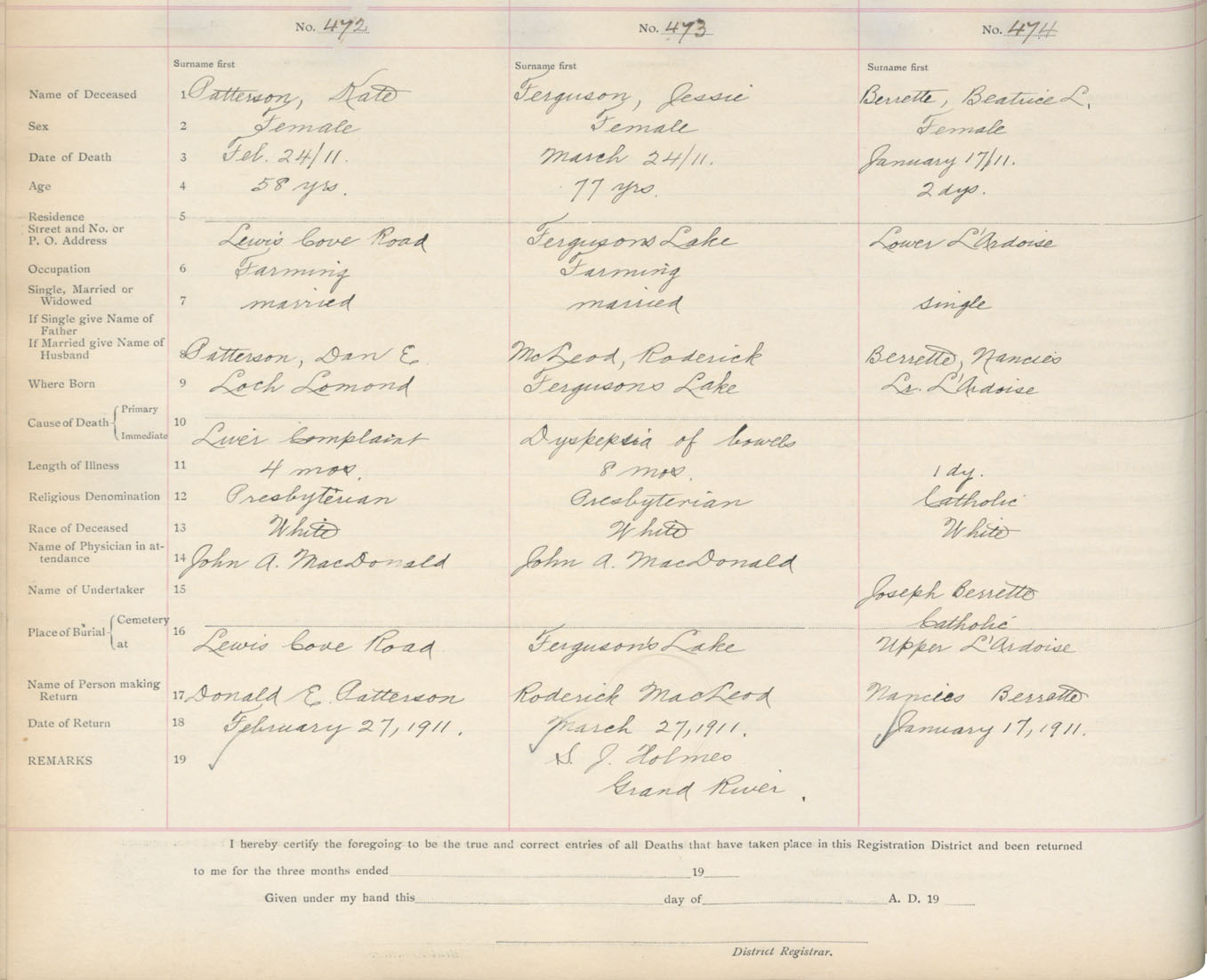 Death Registration: Year: 1911 book: 16 page: 79 number: 474