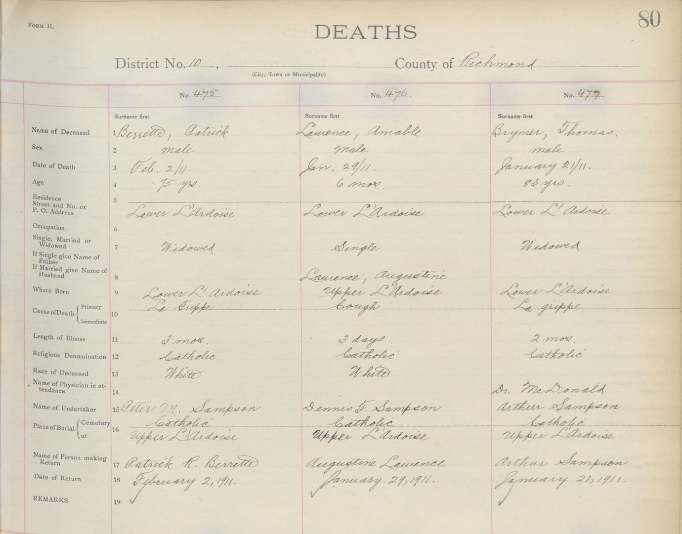 Death Registration: Year: 1911 book: 16 page: 80 number: 477
