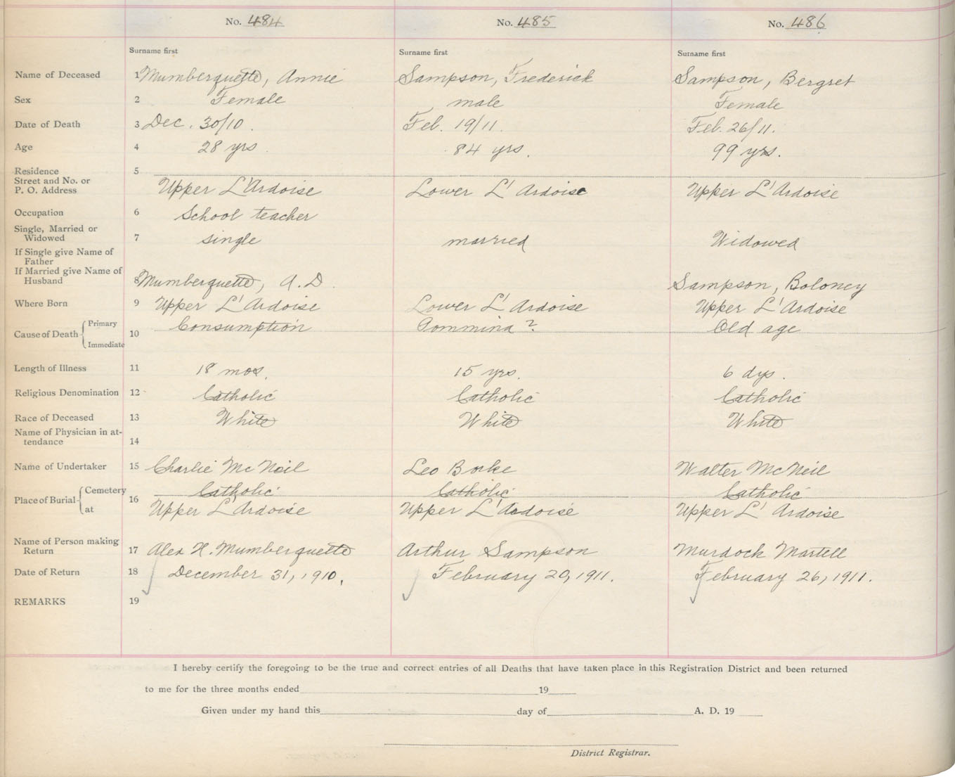 Death Registration: Year: 1911 book: 16 page: 81 number: 486