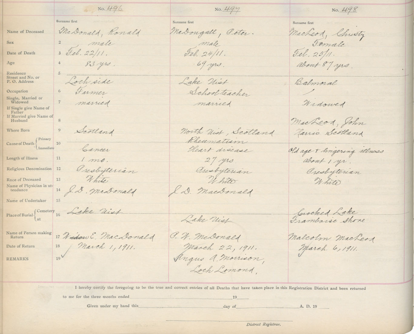 Death Registration: Year: 1911 book: 16 page: 83 number: 498