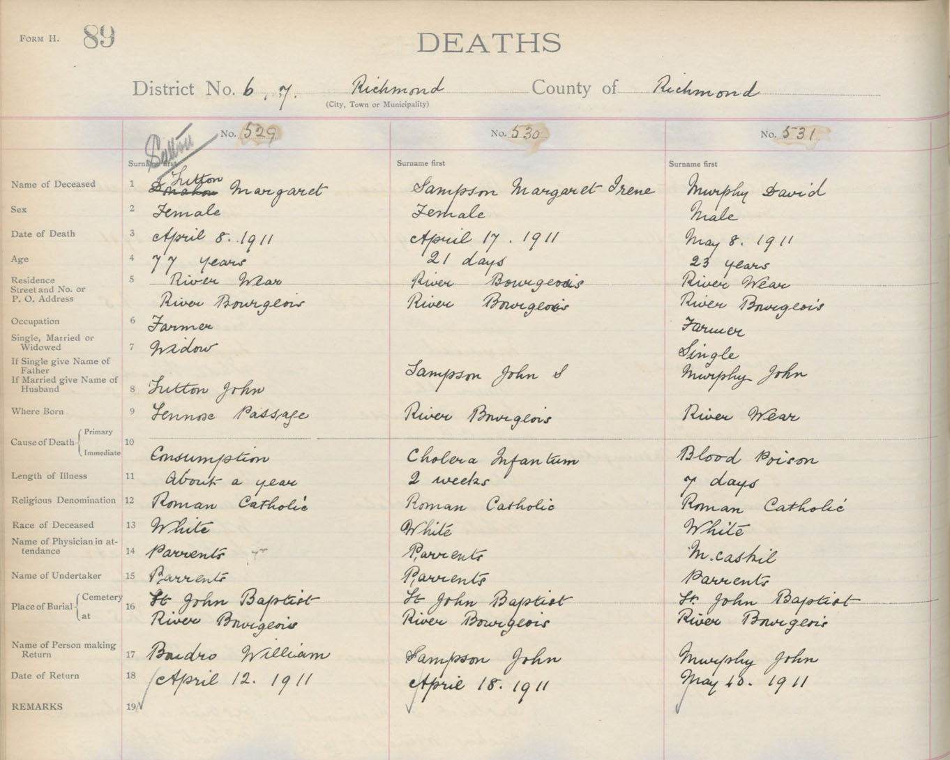 Death Registration: Year: 1911 book: 16 page: 89 number: 529