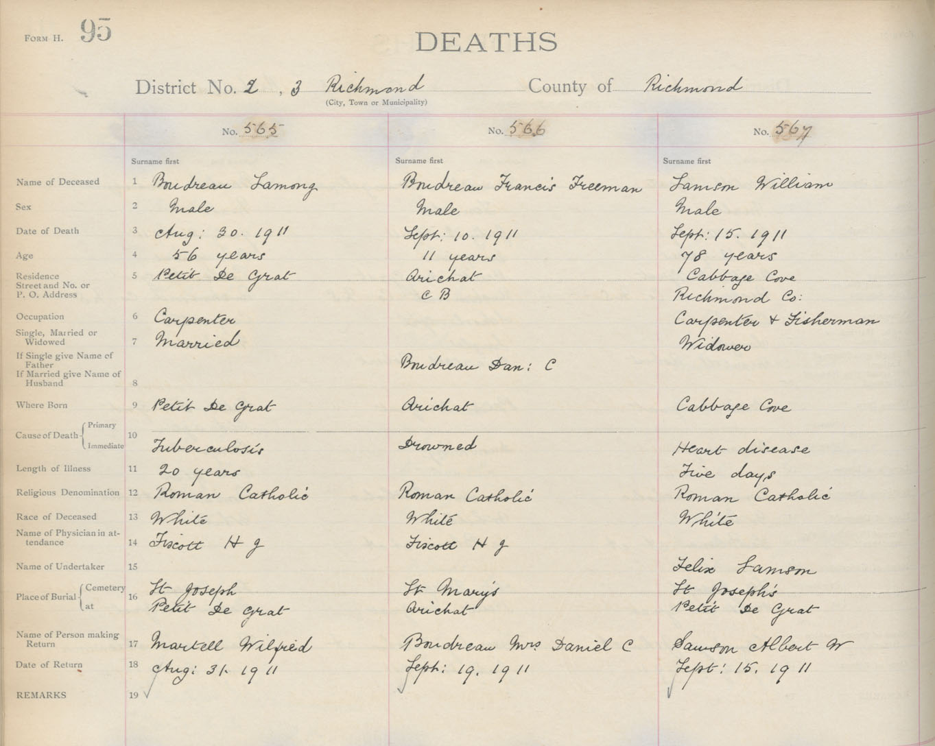 Death Registration: Year: 1911 book: 16 page: 95 number: 565