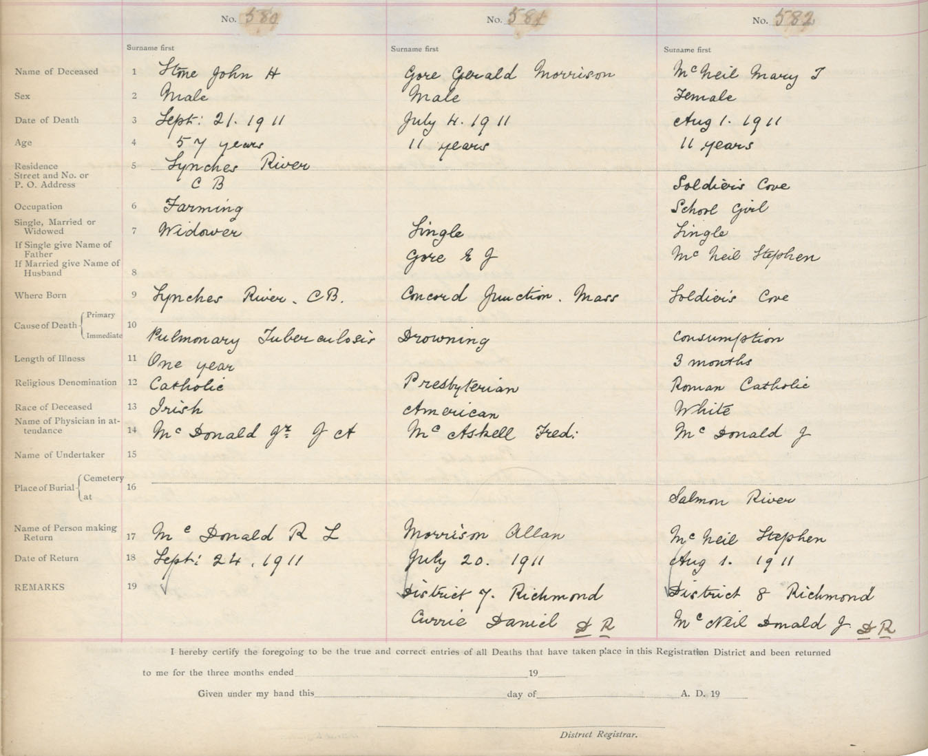 Death Registration: Year: 1911 book: 16 page: 97 number: 580