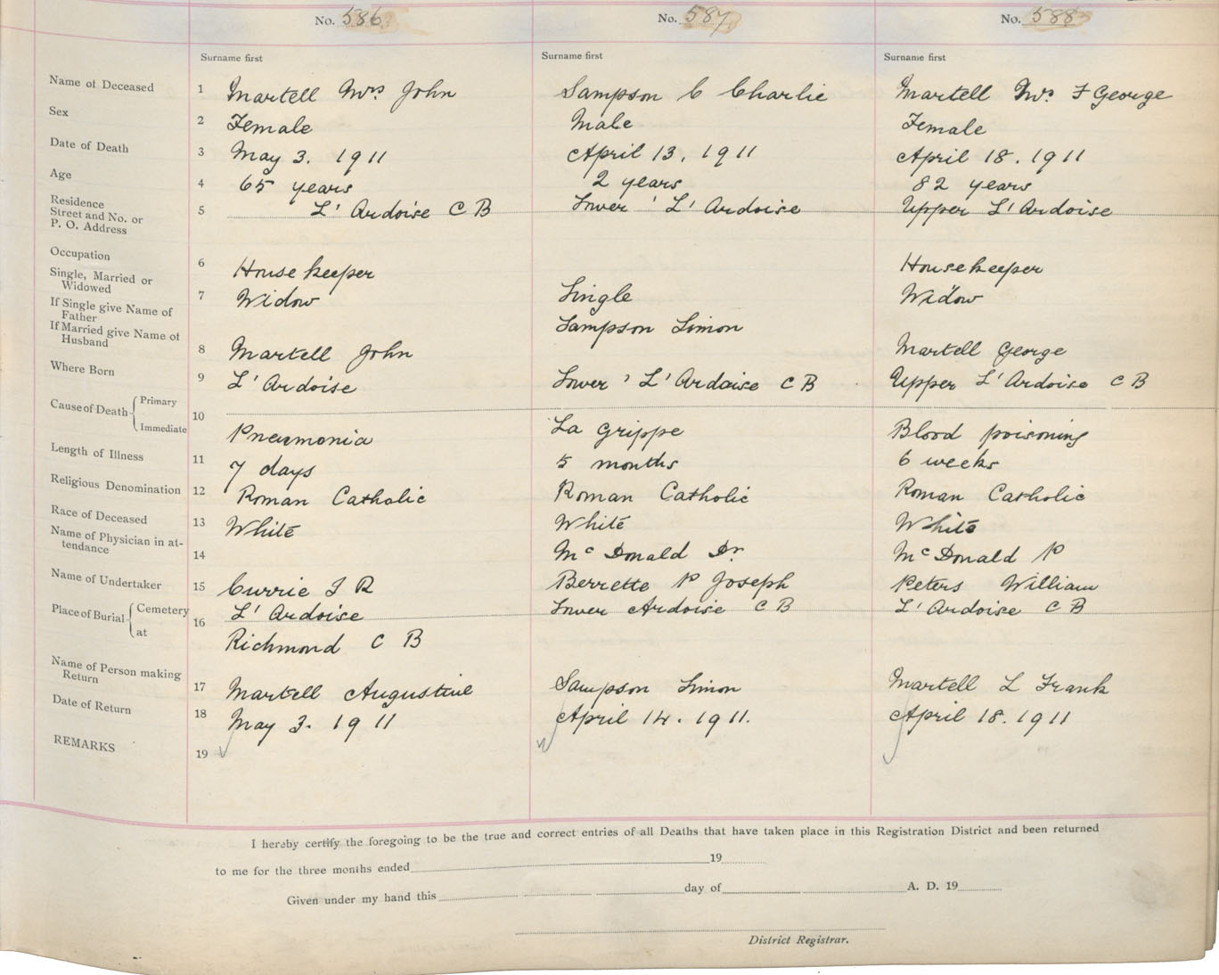 Death Registration: Year: 1911 book: 16 page: 98 number: 586