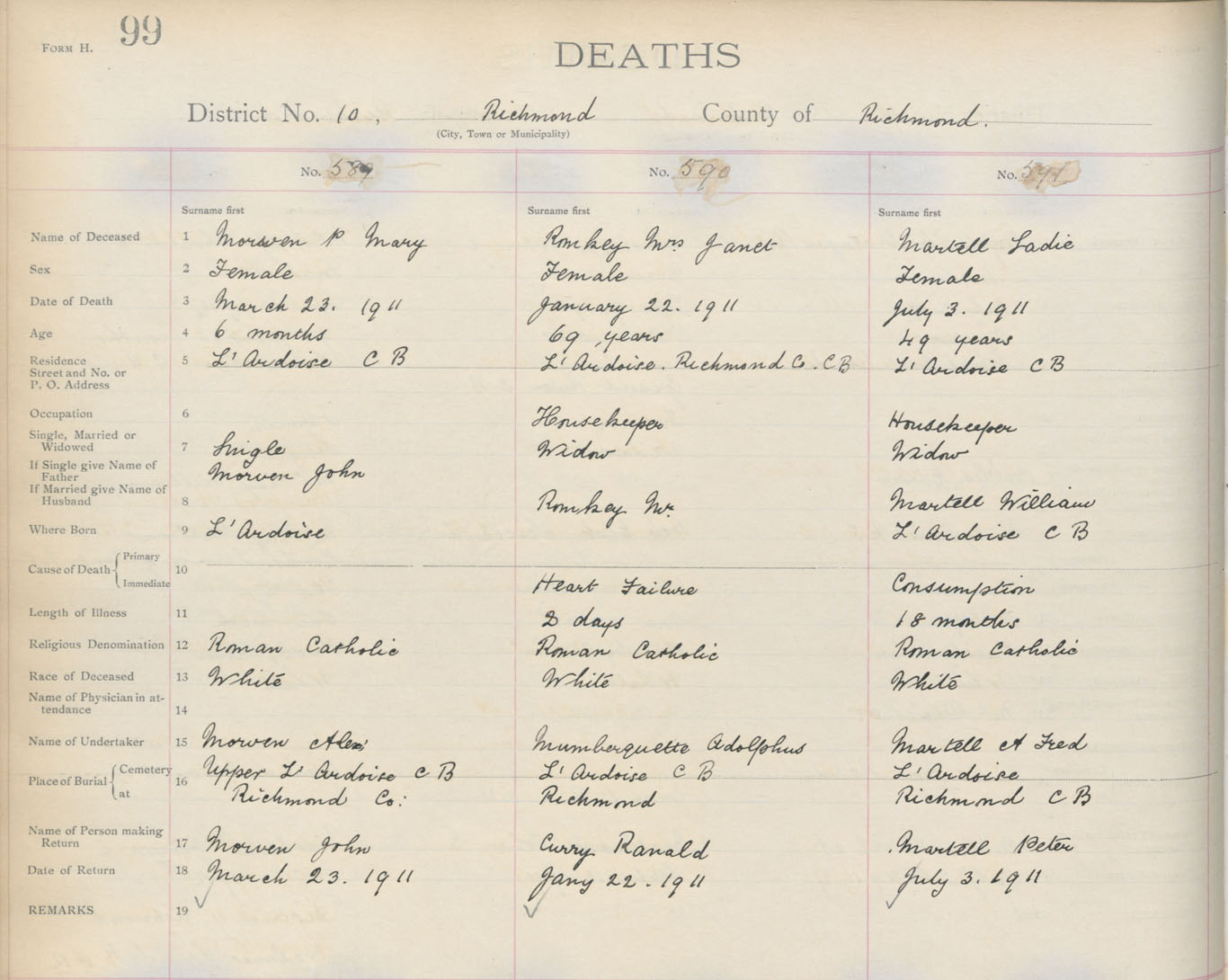 Death Registration: Year: 1911 book: 16 page: 99 number: 589
