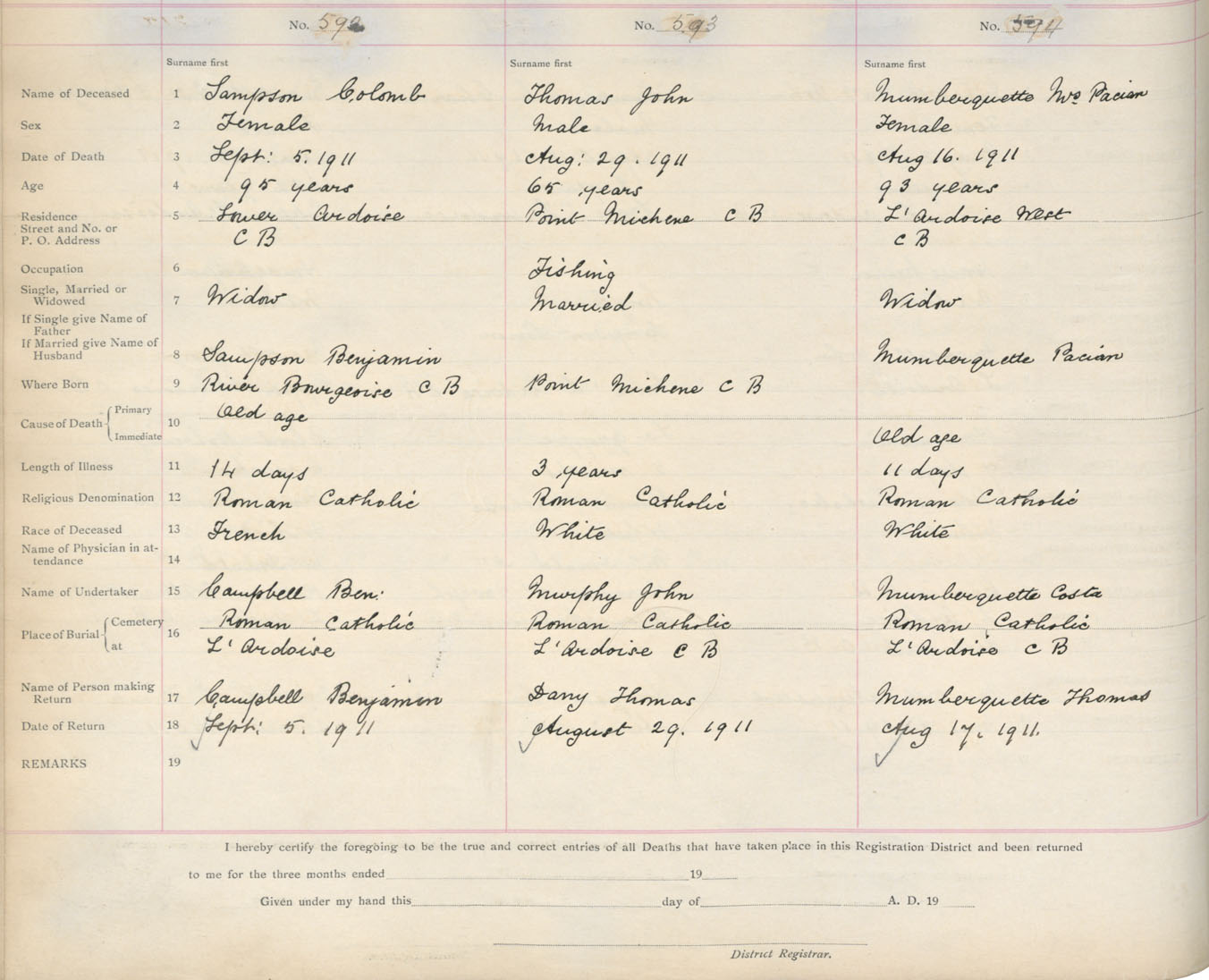 Death Registration: Year: 1911 book: 16 page: 99 number: 592