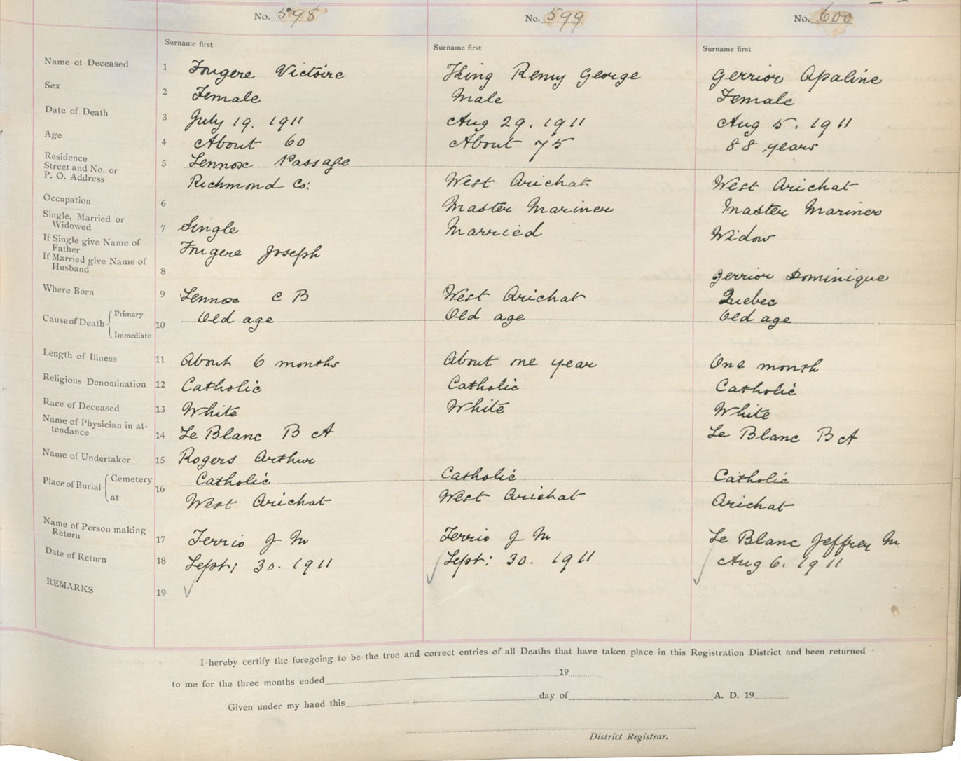 Death Registration: Year: 1911 book: 16 page: 100 number: 598