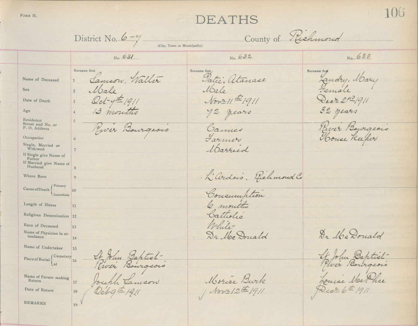 Death Registration: Year: 1911 book: 16 page: 106 number: 633