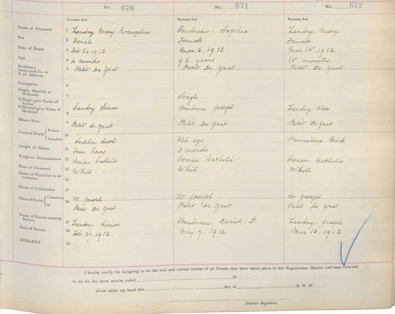 Death Registration: Year: 1912 book: 16 page: 112 number: 672