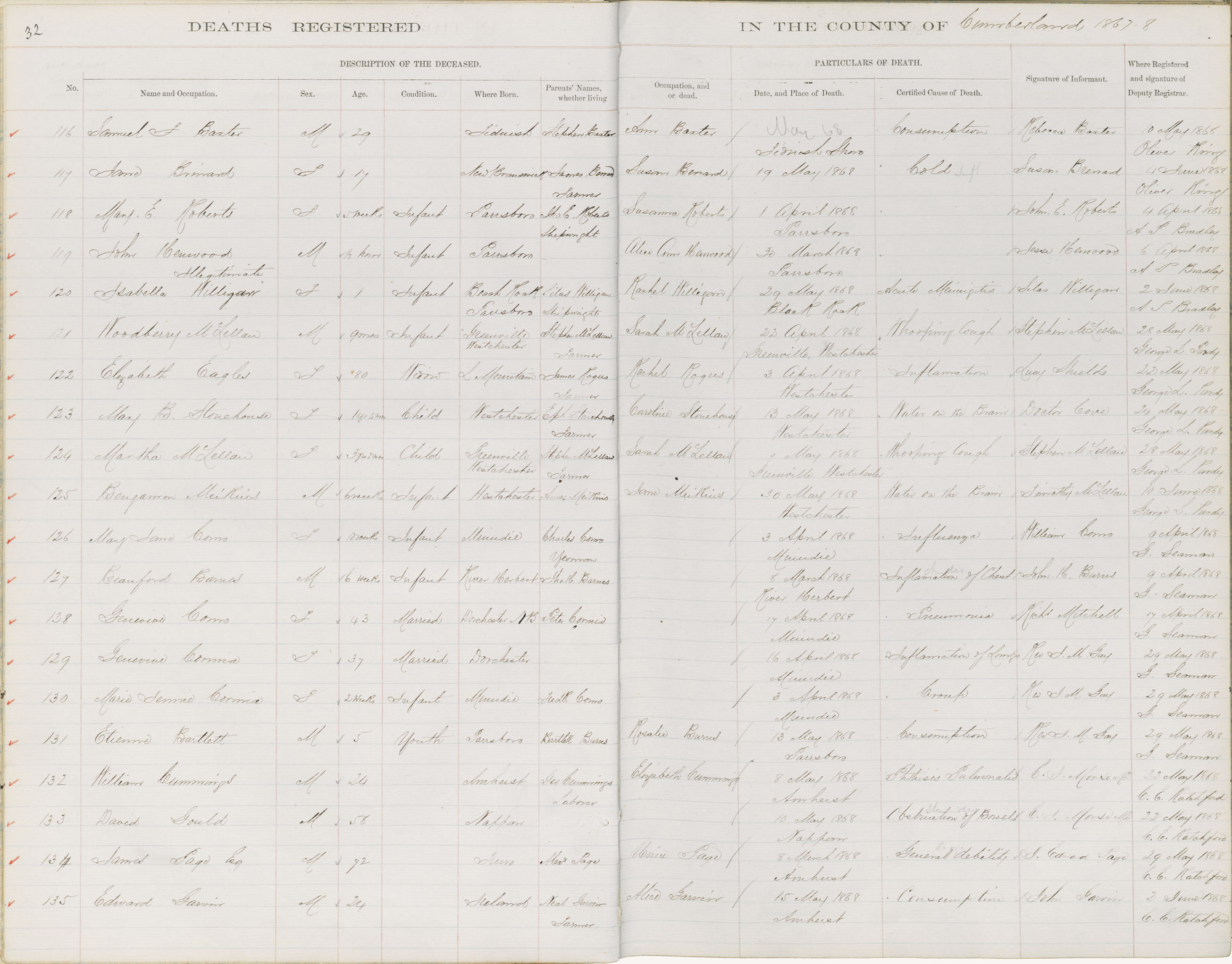 Death Registration: Year: 1868 book: 1805 page: 32 number: 135