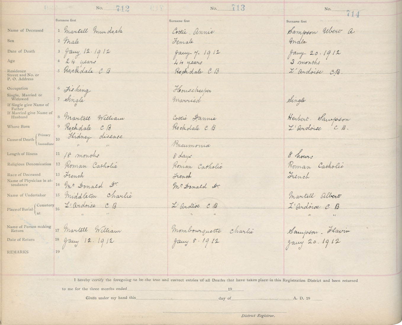 Death Registration: Year: 1912 book: 16 page: 119 number: 714