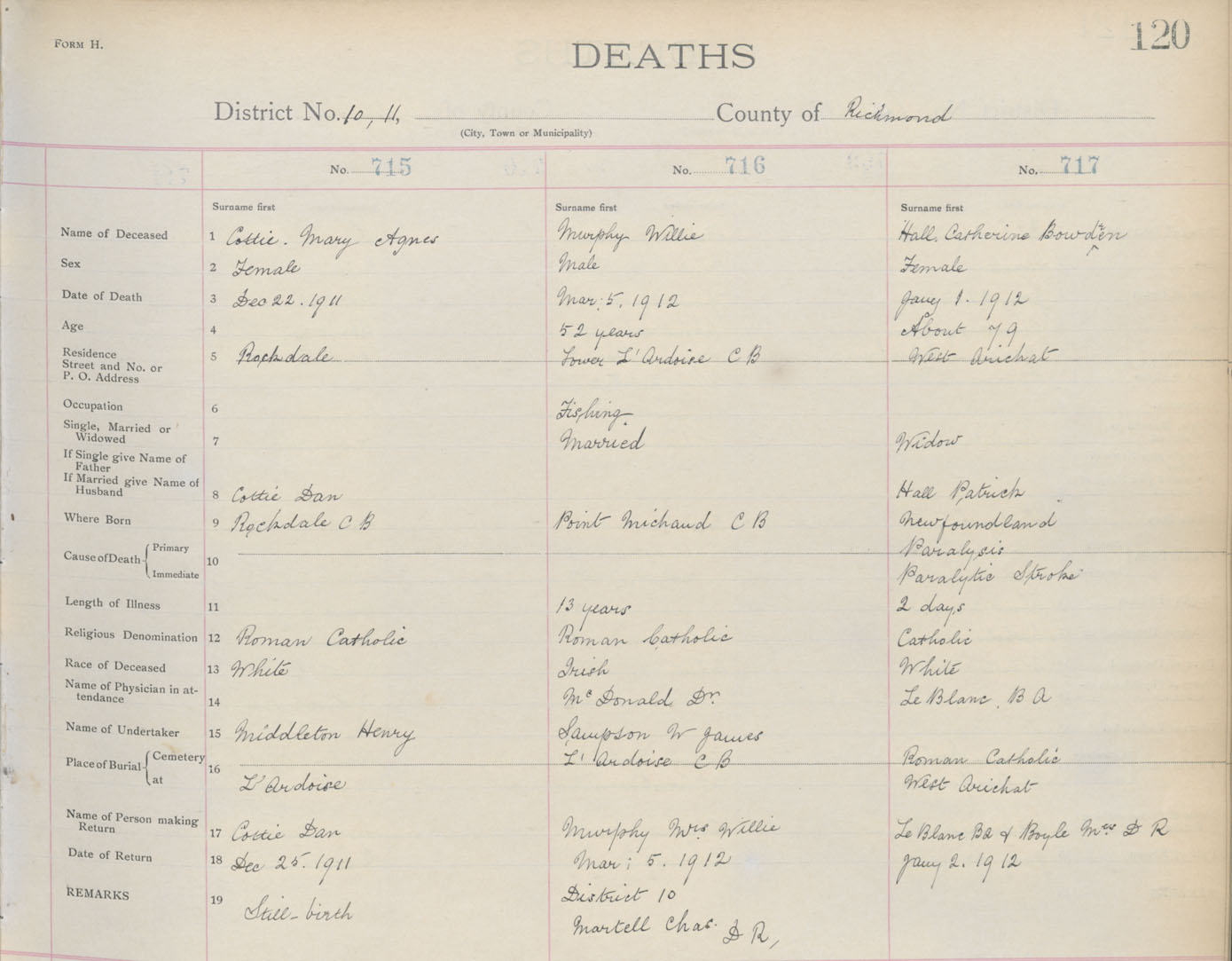 Death Registration: Year: 1912 book: 16 page: 120 number: 717
