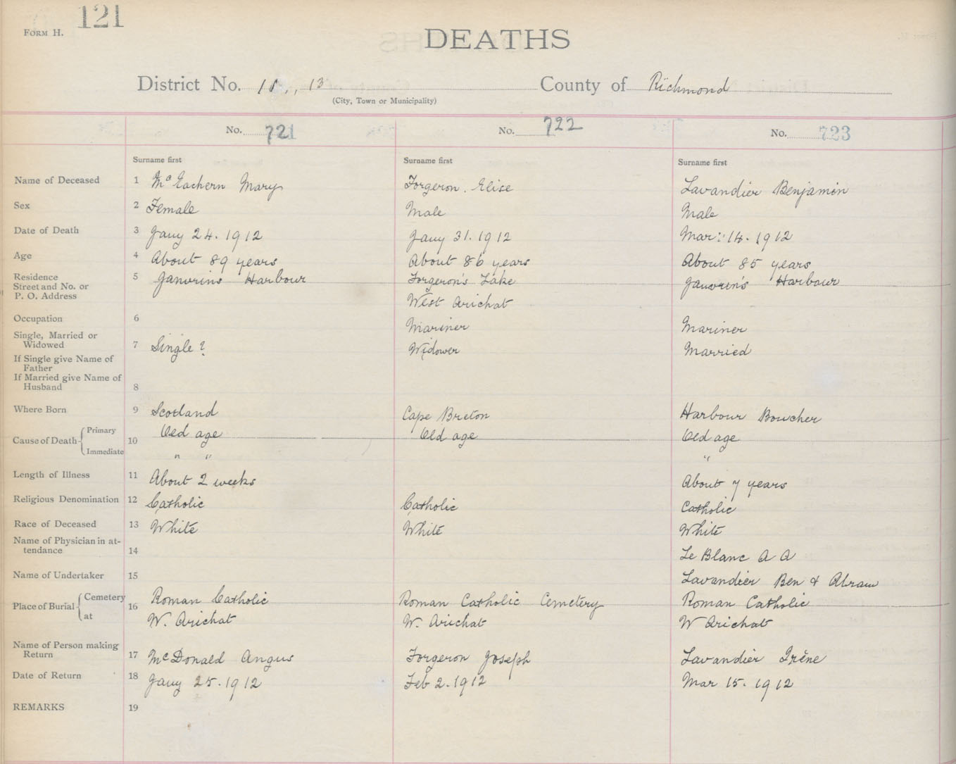 Death Registration: Year: 1912 book: 16 page: 121 number: 723