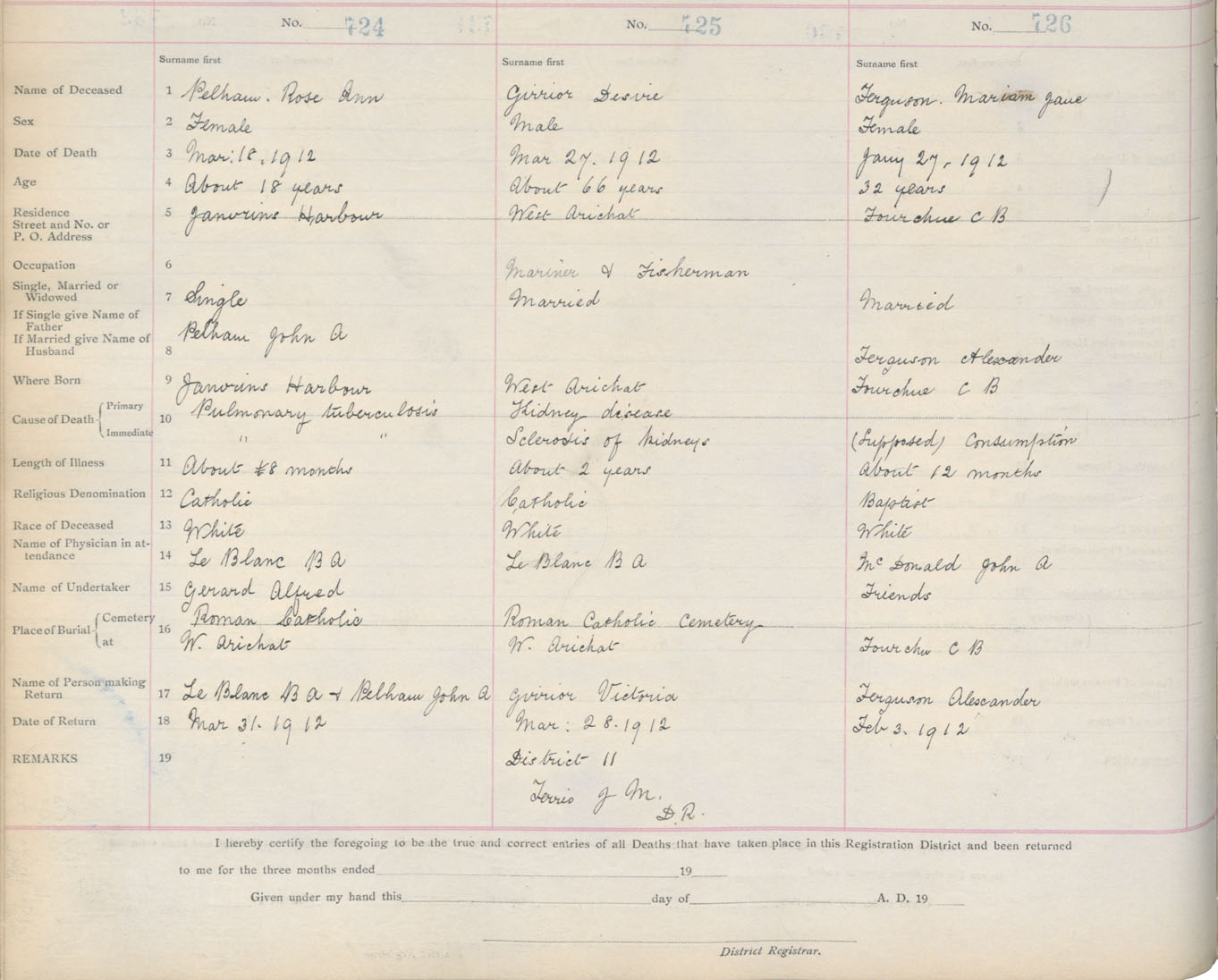 Death Registration: Year: 1912 book: 16 page: 121 number: 726