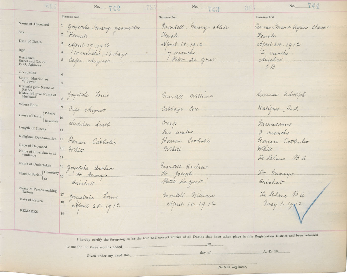 Death Registration: Year: 1912 book: 16 page: 124 number: 742