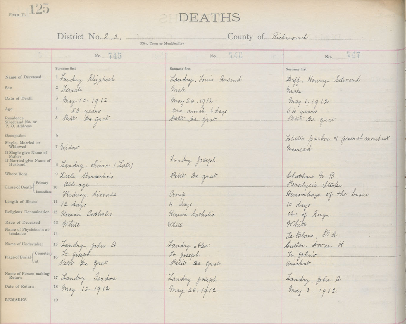 Death Registration: Year: 1912 book: 16 page: 125 number: 745