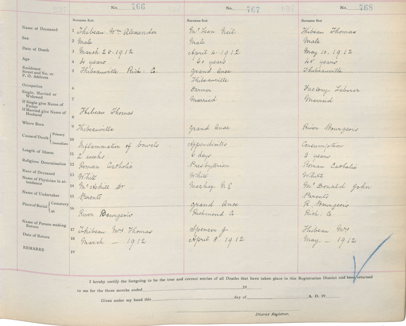 Death Registration: Year: 1912 book: 16 page: 128 number: 766