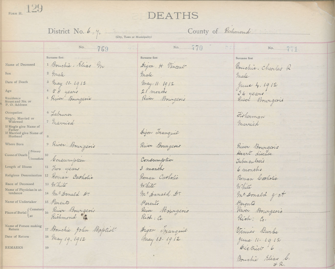 Death Registration: Year: 1912 book: 16 page: 129 number: 769