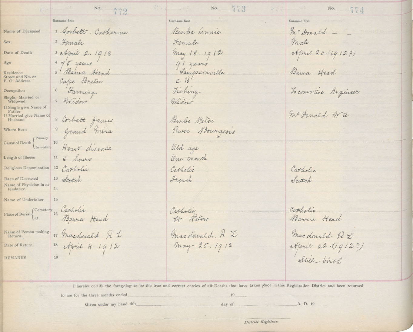 Death Registration: Year: 1912 book: 16 page: 129 number: 772