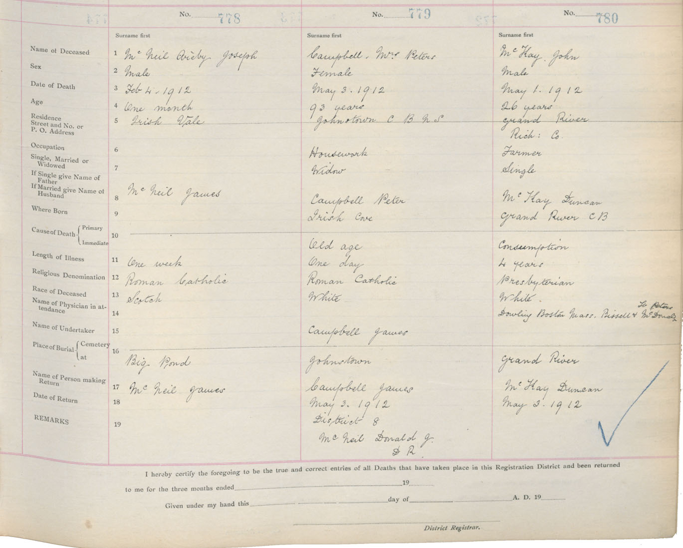 Death Registration: Year: 1912 book: 16 page: 130 number: 778