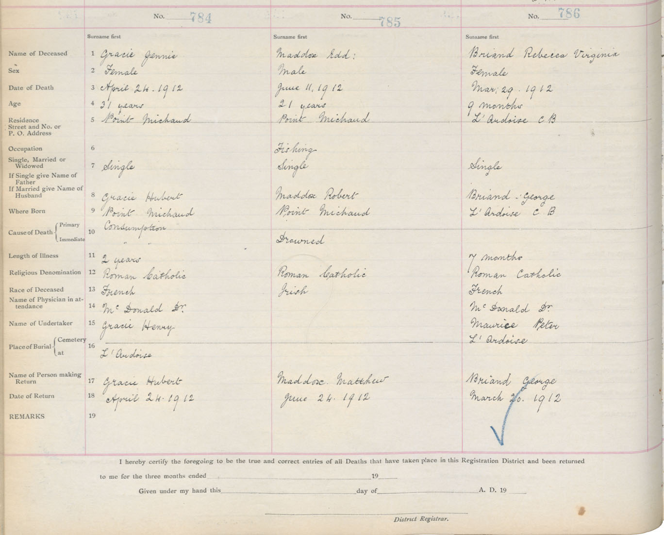 Death Registration: Year: 1912 book: 16 page: 131 number: 784