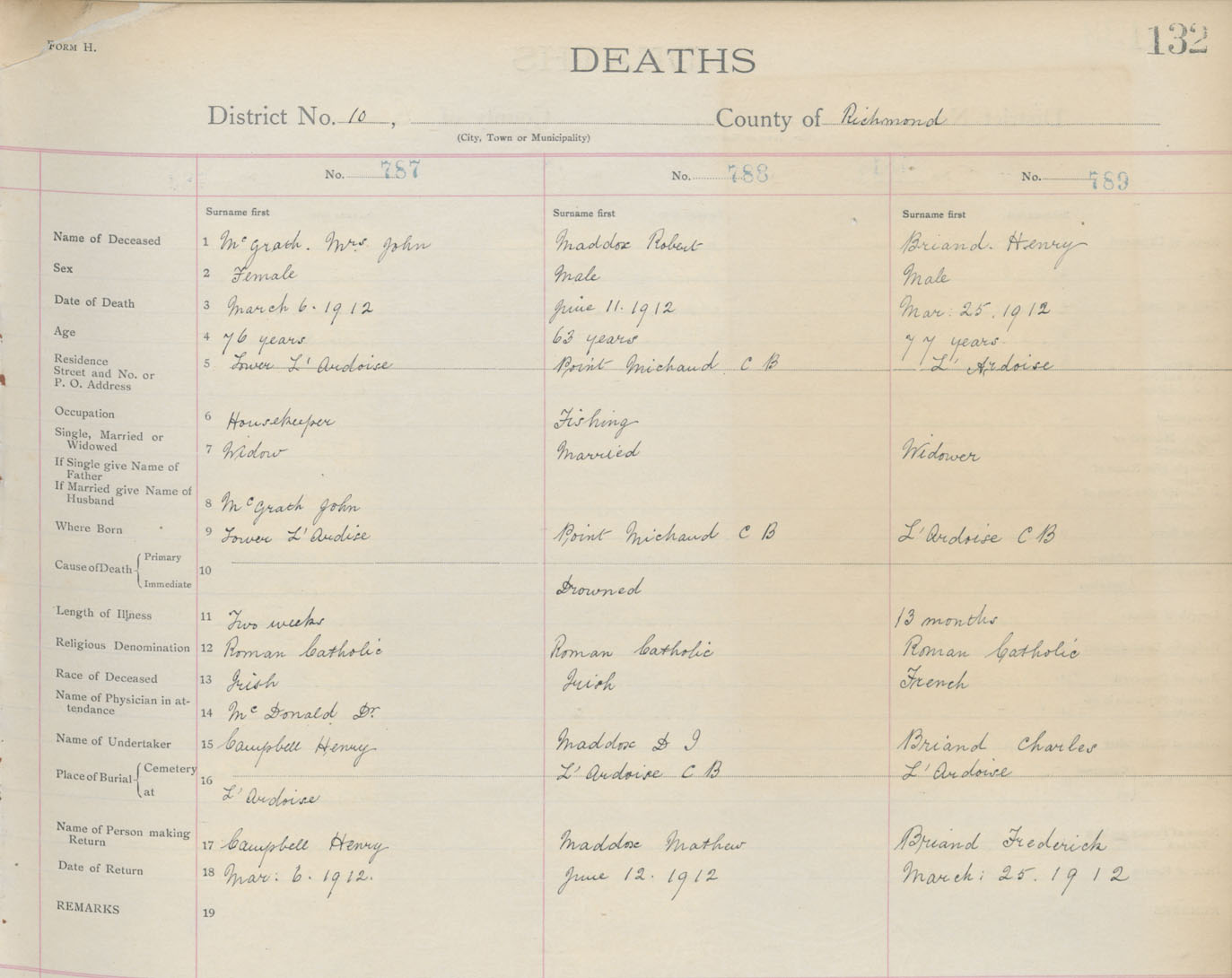 Death Registration: Year: 1912 book: 16 page: 132 number: 790