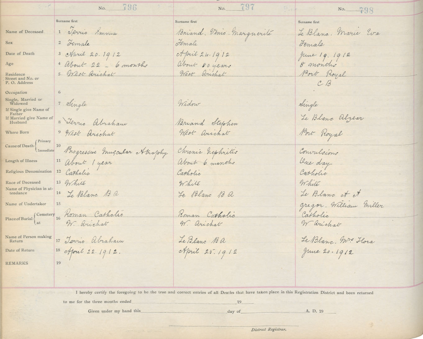 Death Registration: Year: 1912 book: 16 page: 133 number: 796